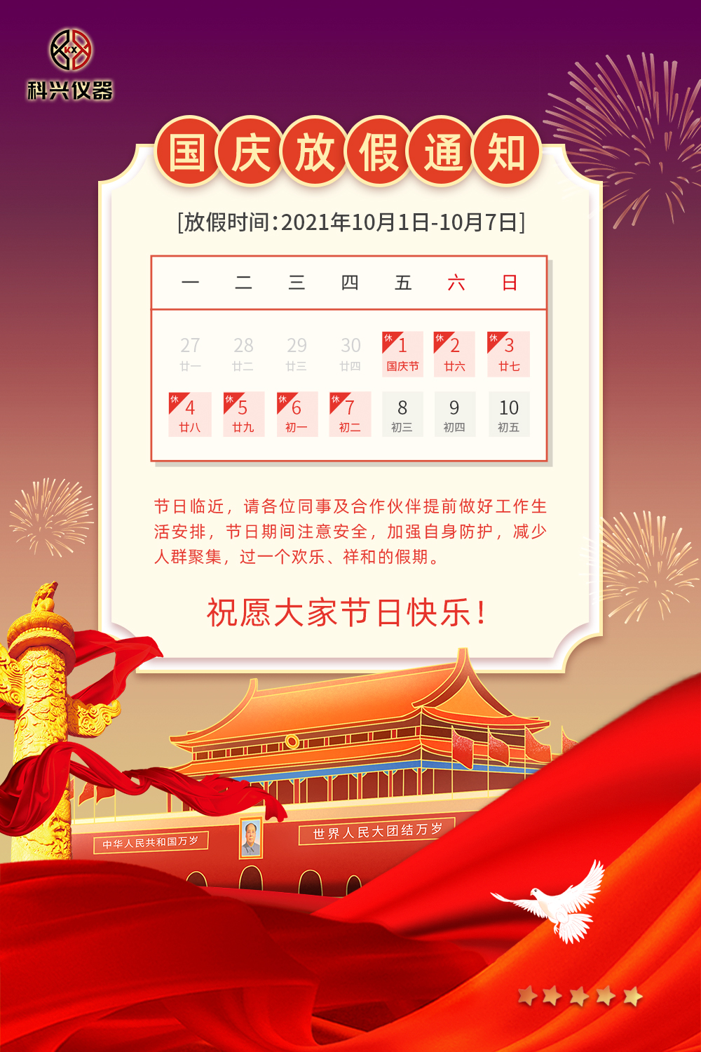您好!感謝大家一直以來(lái)對(duì)上??婆d儀器的信任和支持,在國(guó)慶節(jié)來(lái)臨之際,我司決定于10月1日至10月7日放假7天,10月8日起恢復(fù)正常工作,給您帶來(lái)的不便敬請(qǐng)諒解,謝謝合作!
