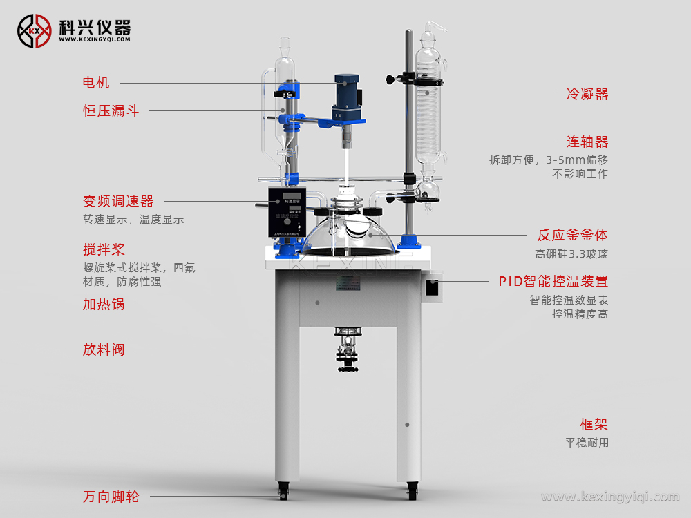 該系列反應(yīng)釜是我公司根據(jù)客戶實(shí)際需要及規(guī)定標(biāo)準(zhǔn)的新型單層玻璃反應(yīng)釜,其吸收了國內(nèi)外同類產(chǎn)品的優(yōu)點(diǎn),同時(shí)大膽創(chuàng)新,不僅使用方便(可一人方便移動(dòng),操作,清洗,安裝,拆卸),而且結(jié)構(gòu)新穎實(shí)用,外形美觀大方;誠為現(xiàn)代化學(xué),精細(xì)化工,生物制藥,新材料合成等試驗(yàn)及生產(chǎn)的理想設(shè)備。該反應(yīng)釜工作原理:玻璃反應(yīng)釜內(nèi)放反應(yīng)物料,同時(shí)可抽真空做攪拌反應(yīng);外部水(油)浴鍋可加水或加熱油進(jìn)行加熱反應(yīng);并能控制反應(yīng)溶液的蒸發(fā)和回流,恒壓加料等功能。(可選配制冷組件,配合制冷源進(jìn)行低溫反應(yīng))